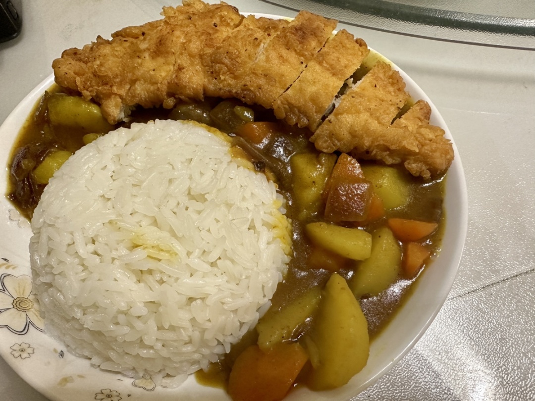 汤汁熬制粘稠淋在米饭上,摆上鸡排~