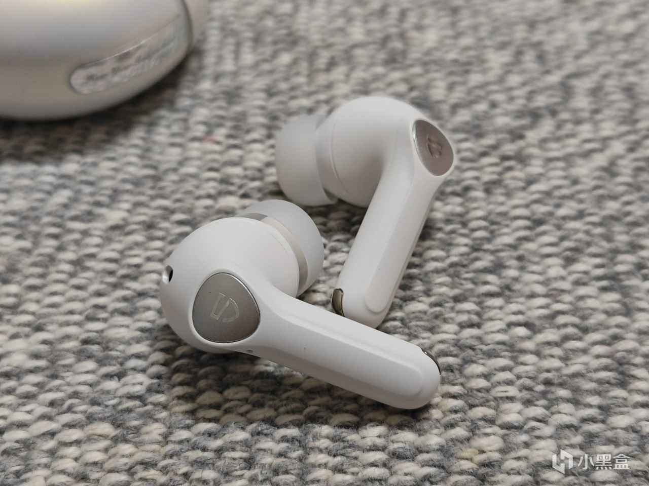 不同於充電倉的金屬質感,Air4 Pro的耳機本體是打磨地非常細緻的磨砂外殼,觸控部分是啞光金屬的質感,上面印有泥炭家的logo,耳機顏值很不錯,辨識度也很高。耳機的佩戴舒適性很強,重量很輕,入耳之後沒有異物感,即便是作爲睡眠塞使用也是完全沒問題的。
