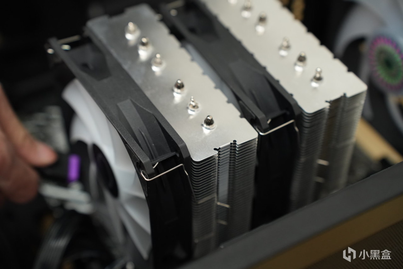 散热方面用的这个酷冷至尊的T620s这款风冷,这里就有人说了,你这为啥不上一个水冷啊?这位同学,这里我就要批评你了,你这就目光短浅了,为什么要上风冷,风冷在大功率运行的时候那个声音大家懂的都懂,这个声音让老板听到了,这老板还会以为你在认真工作!所以这个散热,必须用风冷!至于这款酷冷至尊T620S风冷的散热效果,可以说是很不错的,就这个去压我这个u完全足够,甚至我感觉这个散热配上我这个u他都懒得动弹。