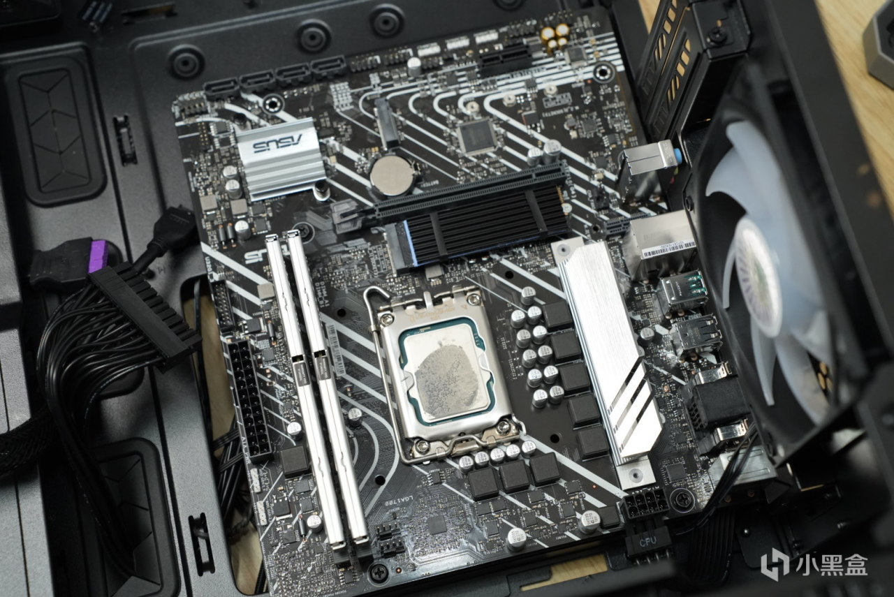 装完cpu这里直接装散热器,这里一定一定要注意,一定要把散热器的排线装上,我之前看见一个老哥没有装散热器的排线,就那样用了大半年。。。。我也是很佩服的其实。