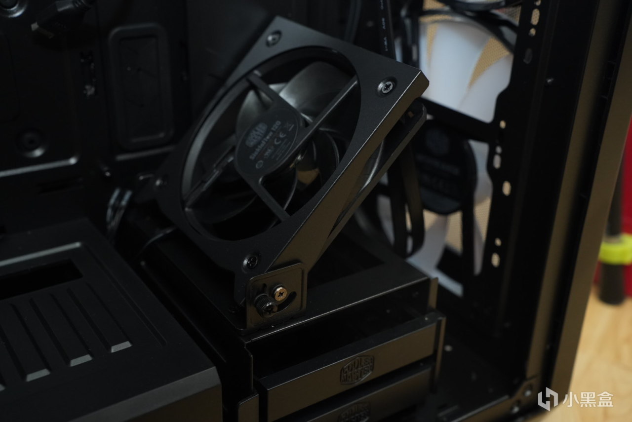 这款机箱相对于我现在家里正在使用的机箱来说,他在硬盘位置增加了散热风扇,但是!你先别急,这不是给硬盘散热的,这个是辅助显卡散热的,这对于显卡散热来说确实是有一定的提升。