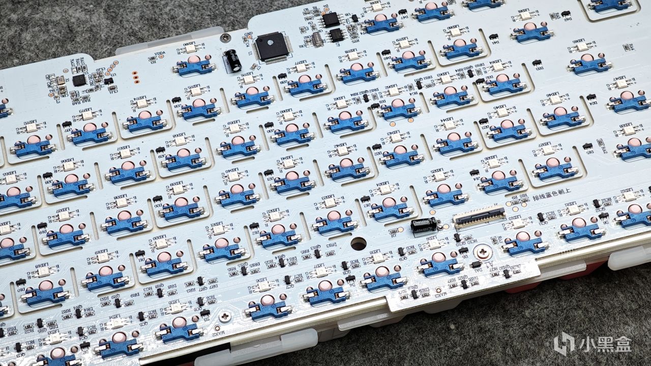 PCB同樣爲目前的主流單鍵開槽配置,但在具體的開槽方式上有所區別,可以看到整體的開槽並不是很極限,因此在軟彈程度上自然是要差一點的,VK99整體的手感也同樣比較硬,不單單是開槽的作用。