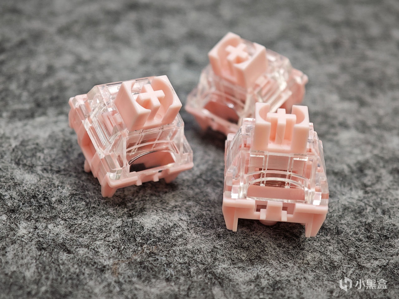 這次發佈的兩款新配色同樣採用了和主題顏色相近的軸,分別是TTC的烈焰粉軸和佳達隆的葡萄奶昔軸,這兩款軸體都是非常值得選的。
