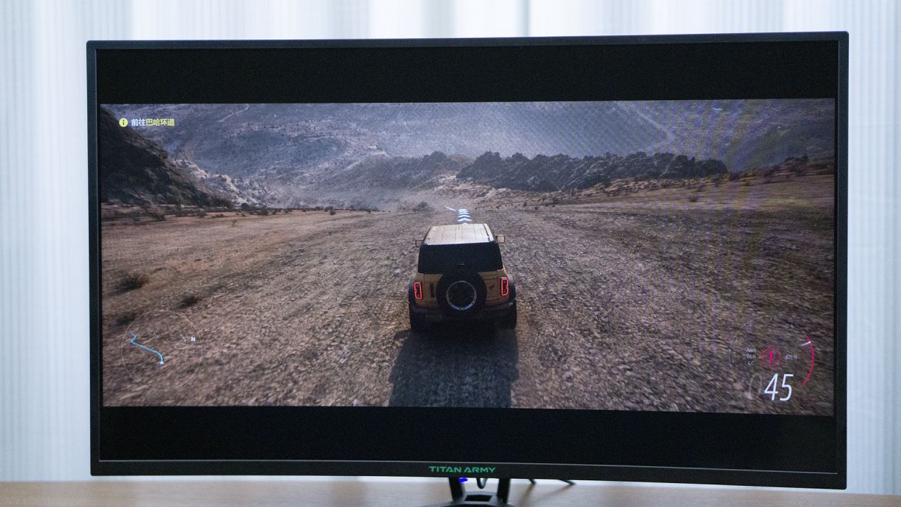 另外,高刷新、大画面、微曲面的屏幕,在竞速游戏之中的体验更是不错。比如《地平线5》,更大的画面,带给了我们更强的拟真感觉。同时,在Adaptive-Sync技术的加持下,它杜绝了画面撕裂的尴尬,风驰电掣的车、旖旎的风光满眼都是一种享受。
