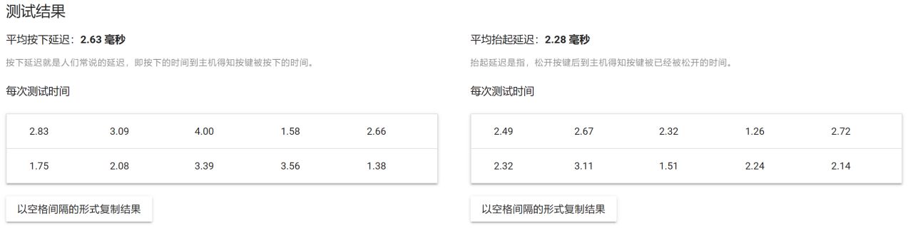 实测延迟信息如下,到手急用不安装任何驱动的情况下,2.4G的延迟也能达到3ms左右,观察详细测试数据,最低延迟甚至只有2ms出头。