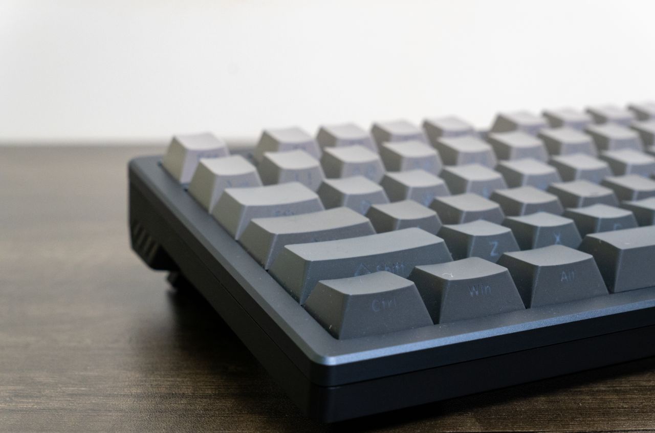 键帽这次有三种选择,我手上的是ABS透光侧刻版本,整把键盘由上至下由浅灰色到深灰色渐变。另外还有PBT热升华的极地狐配色可以选择。