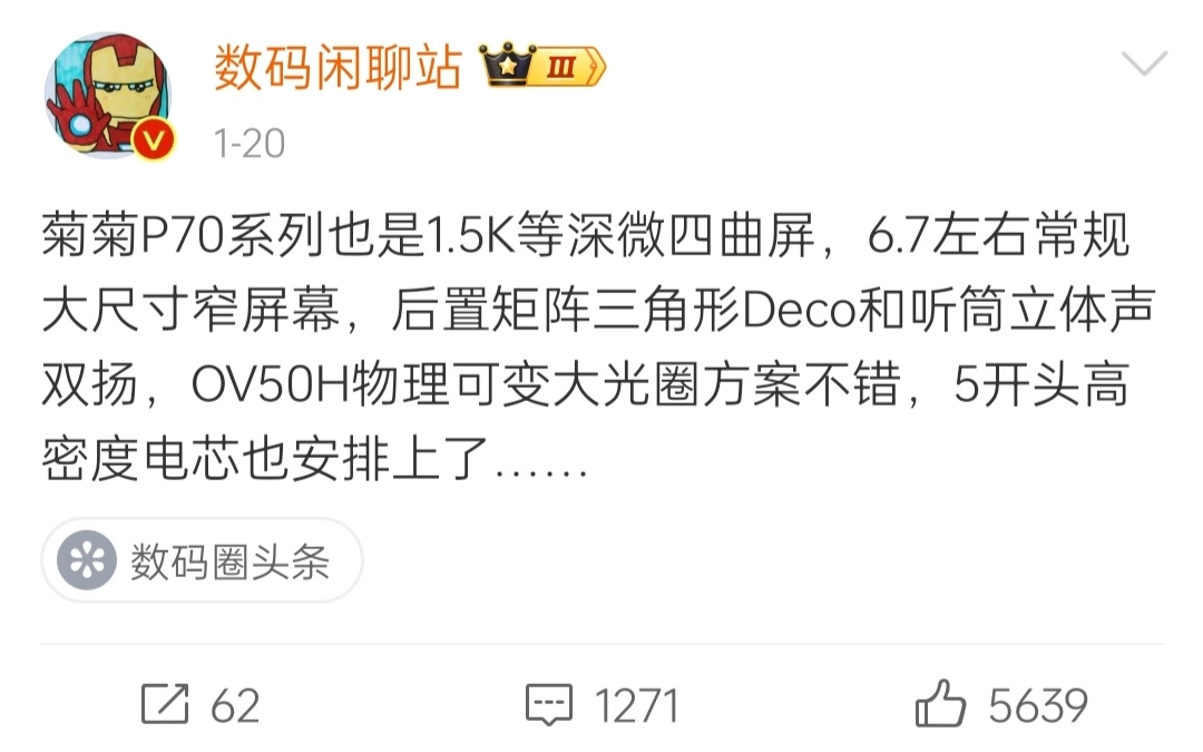 近日,微博数码博主 @数码闲聊站 爆料了华为 P70系列手机将延期发布,此前的发布日期定为三月下旬。但是根据他的爆料可以知道P70系列整体有较大提升。