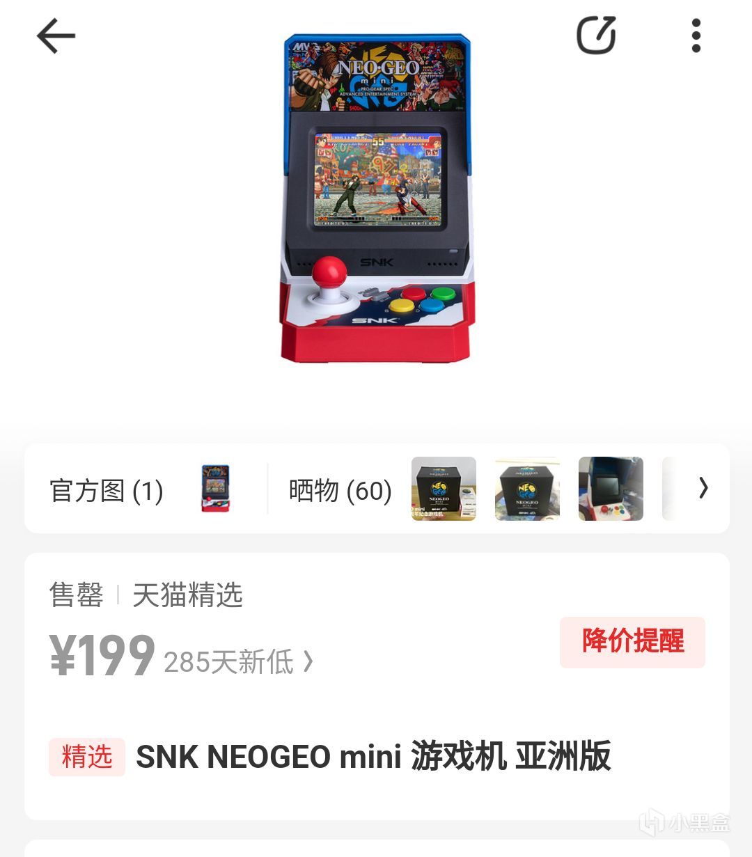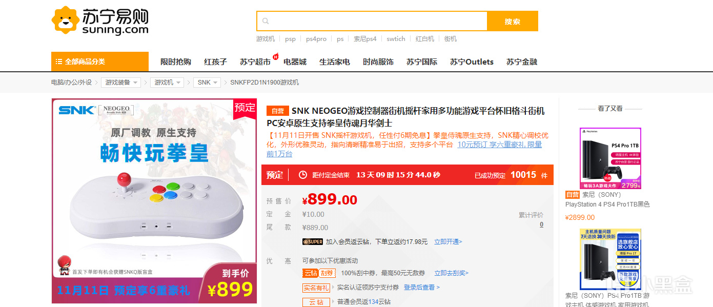 由于自己想玩格斗游戏发泄下情绪,在网上搜格斗摇台相关优惠。找到了这个一机两用(主机与摇杆)的SNK ASP(NEOGEO Arcade Strick PRO),这长得和香皂一样的玩意国行首发价899元(19年),去年5月一度降到了130元。