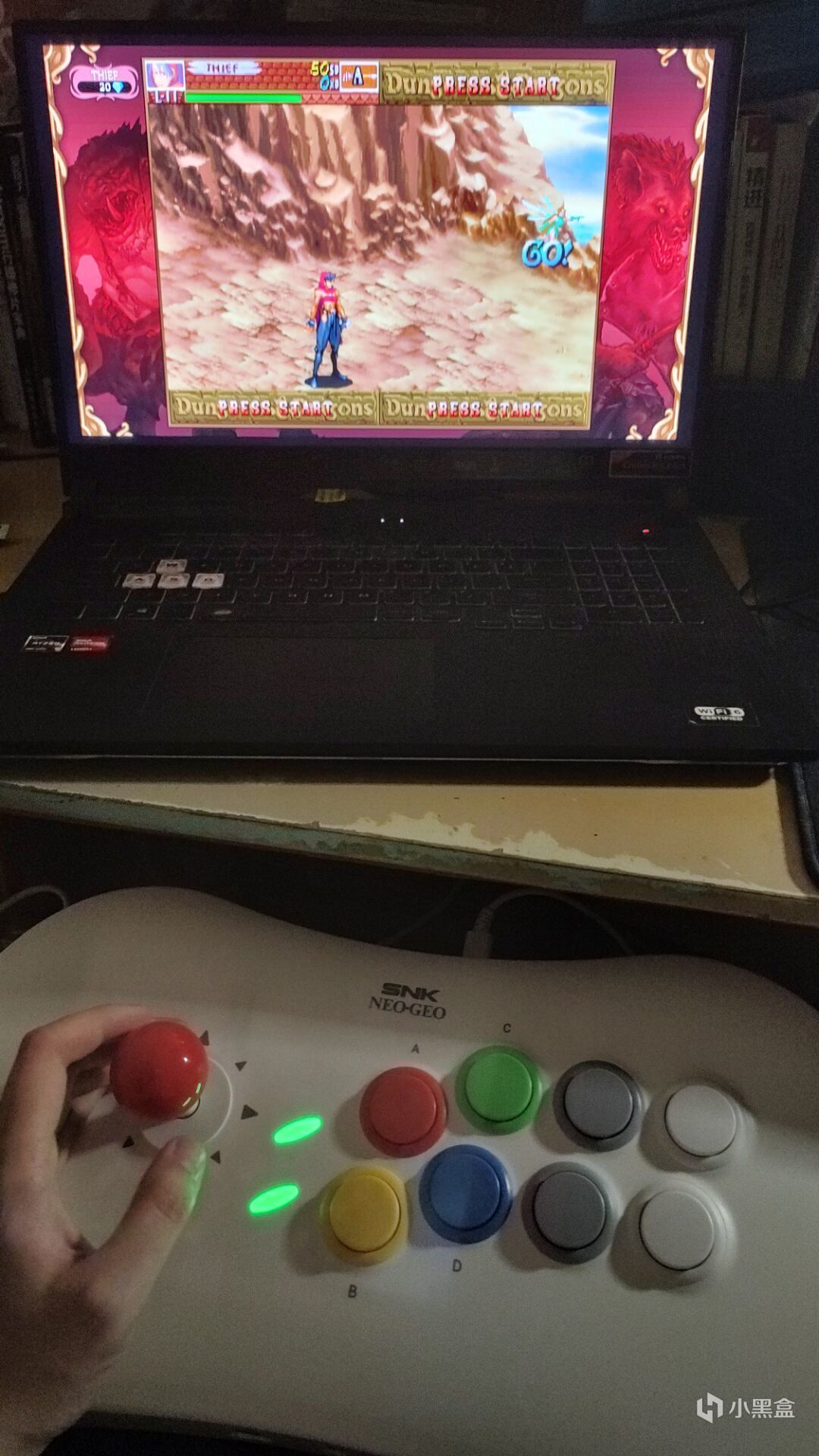 主机自带的游戏有玩起来还是顺滑的,有种街机房打格斗的感觉,而且因为是四方向方档,所以搓招还是和以前一样难。