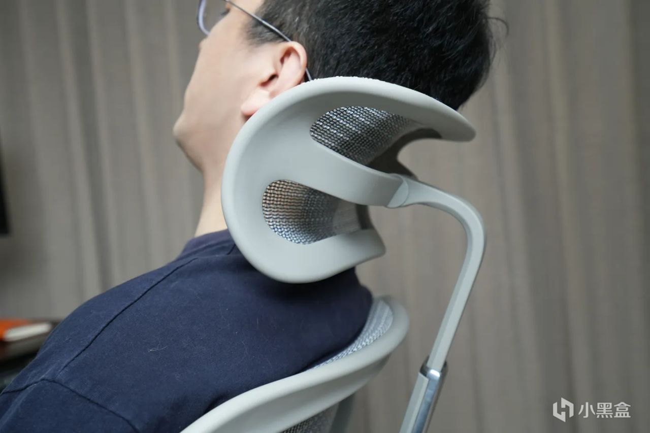 頭枕材質爲網面,面積很大,角度和高度的調節在靈活的基礎上固定的更穩。