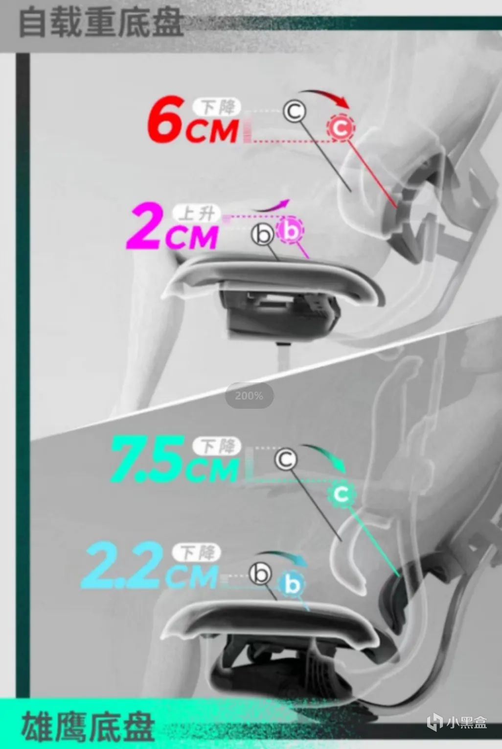 而金豪b雄鷹底盤。座墊隨着後仰 b點下降2.2cm,同時c點下移7.5cm, 是符合人體工學同步傾仰原則,沒有頂臀後仰的脊椎受力問題。