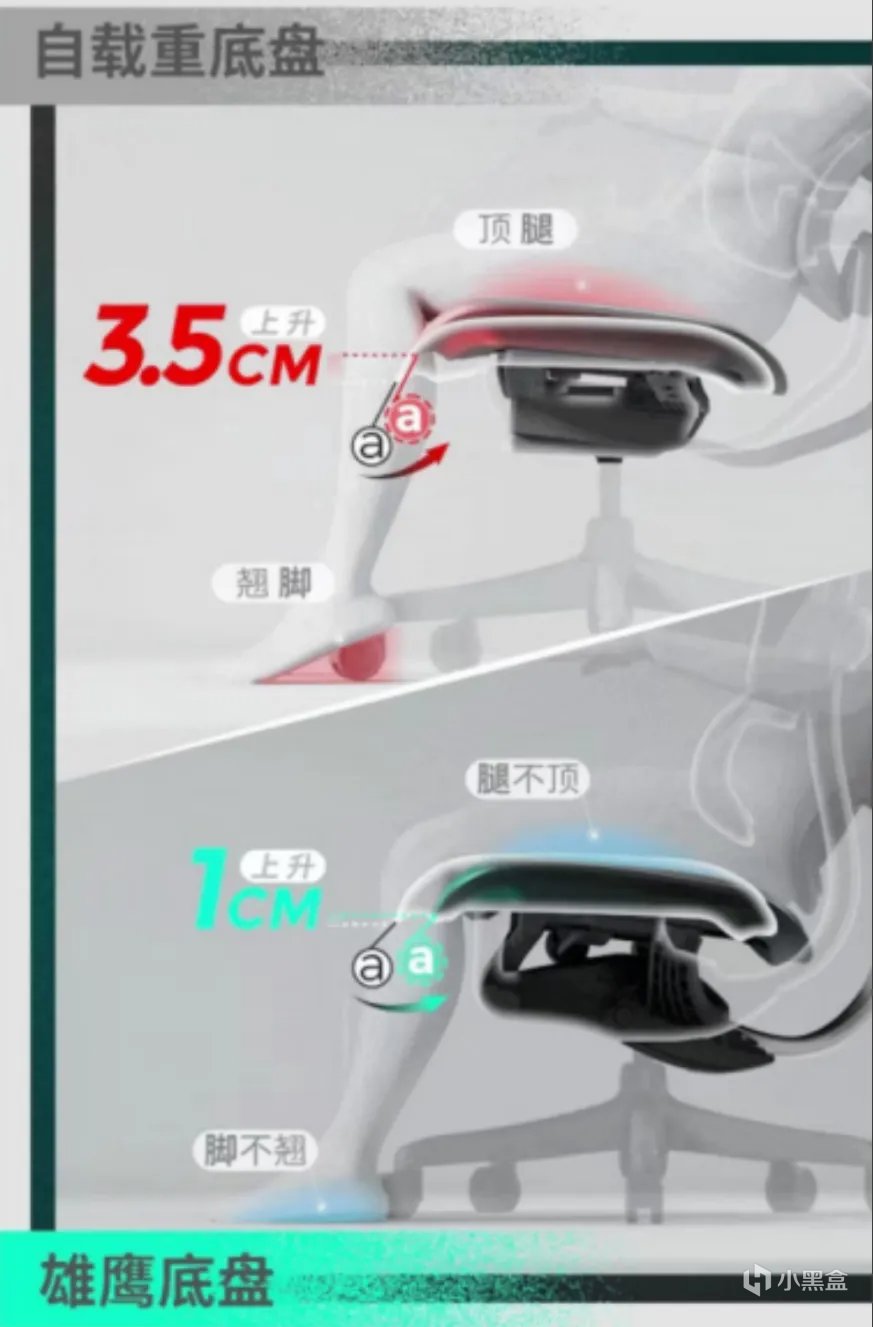 (1)自載重底盤座墊前沿a點上移3.5cm,如此會造成後仰時腳跟翹起和出現頂腿情況,致使兩腳無法平踩地面,將大大增加後仰時的脊椎承受力;而保友金豪b雄鷹的底盤座墊前沿a點上移只有1cm變化,不出現腳跟翹起與頂腿情況。