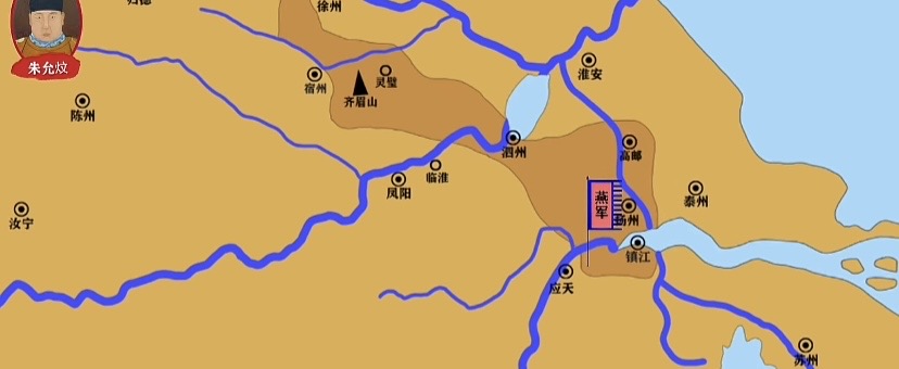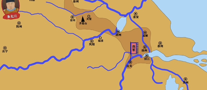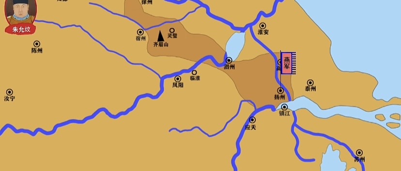 朱棣尝试于淮安、凤阳等地渡河但均遭到失败,