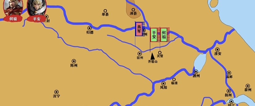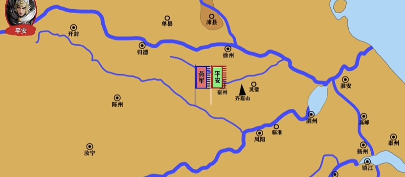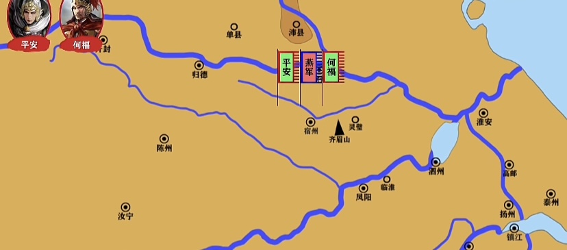 朱棣也不再理会,便绕过徐州继续南下,3月初燕军抵达涡河,平安见燕王一路南下便率军来追,但被燕王派来的伏兵击退,只能退回到宿州。