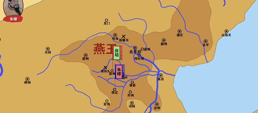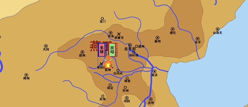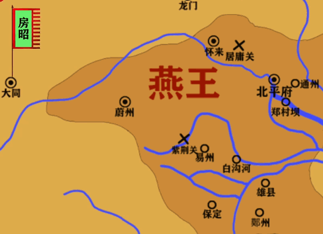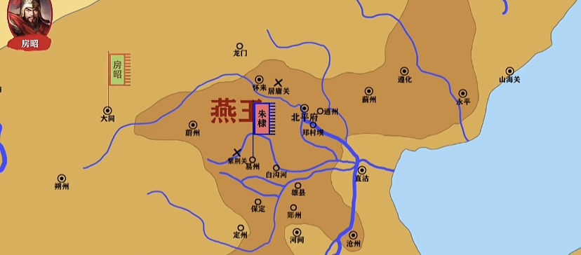 7月,盛庸命驻守大同的部将房昭入紫荆关侵扰保定,并率军屯驻易州水寨准备以此来威胁北平。