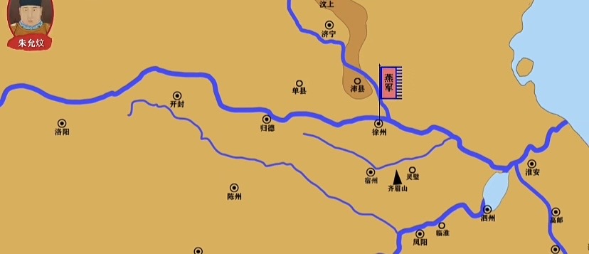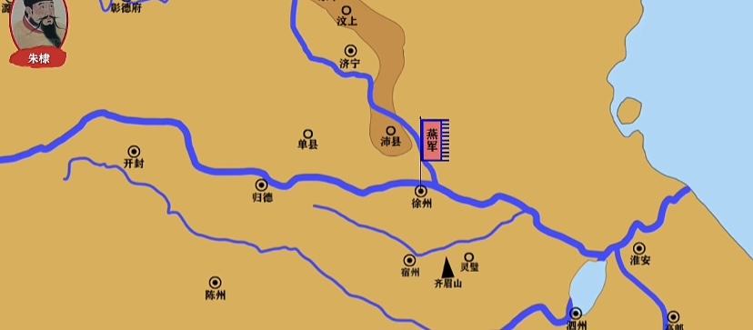 朱棣先派兵袭击南军粮道,而后又率军击败徐州出战的守军,徐州守将决定坚守不出,
