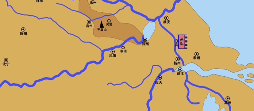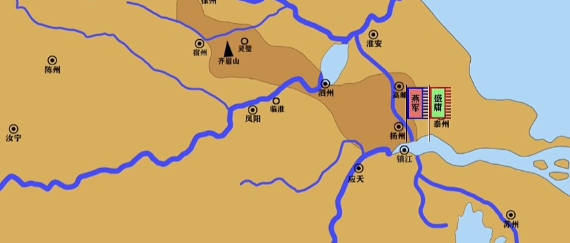 盛庸战败逃跑,燕军攻克盱眙,而后继续向扬州进发。