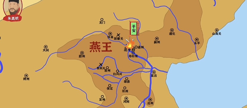 当日夜里燕王攻取北平九门彻底控制了北平城。6日,通州等地上表归附燕王。