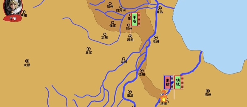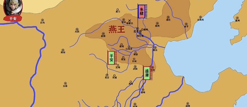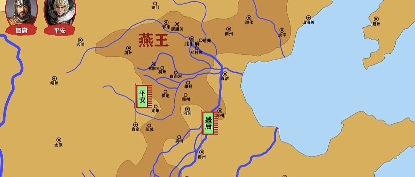 但燕军在南军的火器优势之下损失惨重,朱棣无奈只能率部再度北归,东昌之败朱棣深以为耻,遂与谋士姚广孝商议对策,最终在姚广孝的强烈建议下燕军决定继续南下,此时盛庸于德州屯兵20万,平安等将则驻守真定。