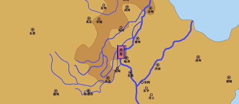 公元1402年正月,燕军在击败驻守德州的部分平安军队之后于馆陶渡河。