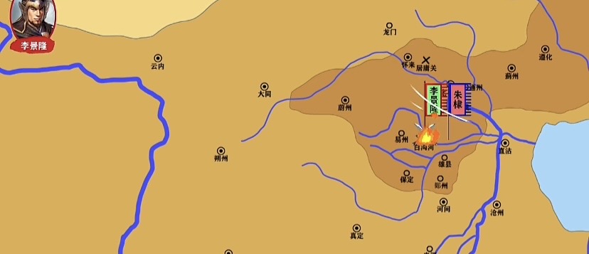 10月2日,燕军于易州水寨与南军展开大战,朱棣命手下死士悄悄登上水寨后山,而后大展燕军旗帜致使南军阵势大乱被燕军打得大败,
