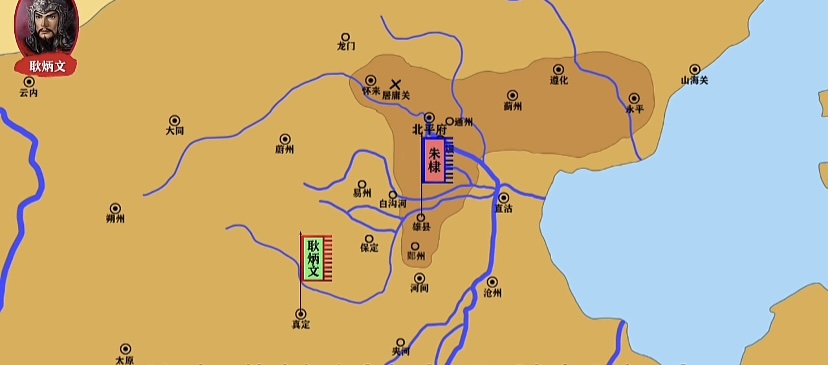 8月13日,耿炳文大军抵达真定,并分兵驻守河间、鄚(mao4)州、雄县三地以为犄角。