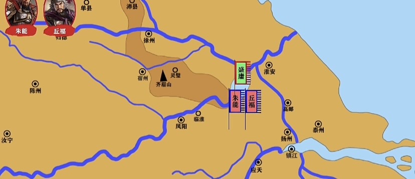 便派遣朱能、丘福等将率领数百勇士绕道后方突袭盛庸,