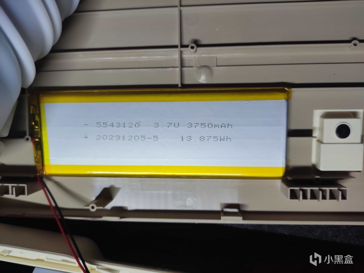 下方将硅胶底垫和底棉揭开之后你能看见下方的3750mAh的电池,整体不算大,但是在削减去显示屏模块之后对这款键盘来说也算够用。