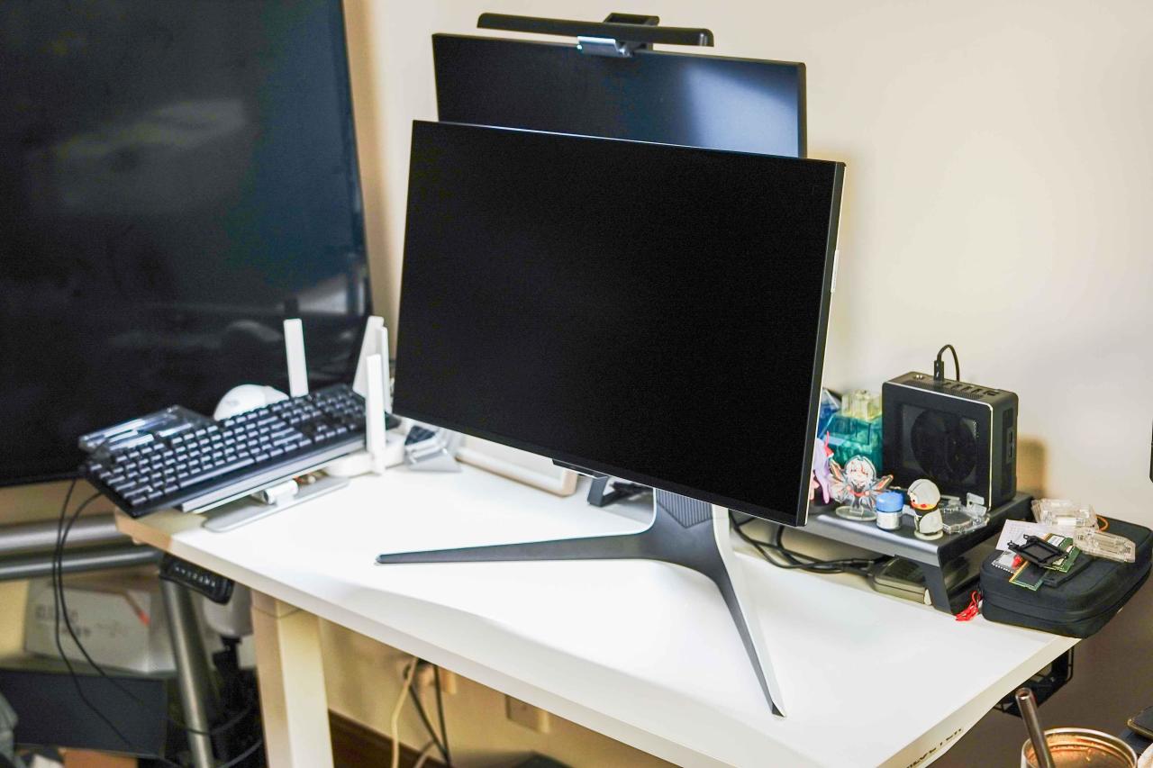 ❌ 原装支架的底座我真得吐槽,太大了,不知道现在显示器厂商咋寻思的,正常桌面能占一半,基本放不下其他东西了,建议上第三方支臂,外置电源也是贼大。