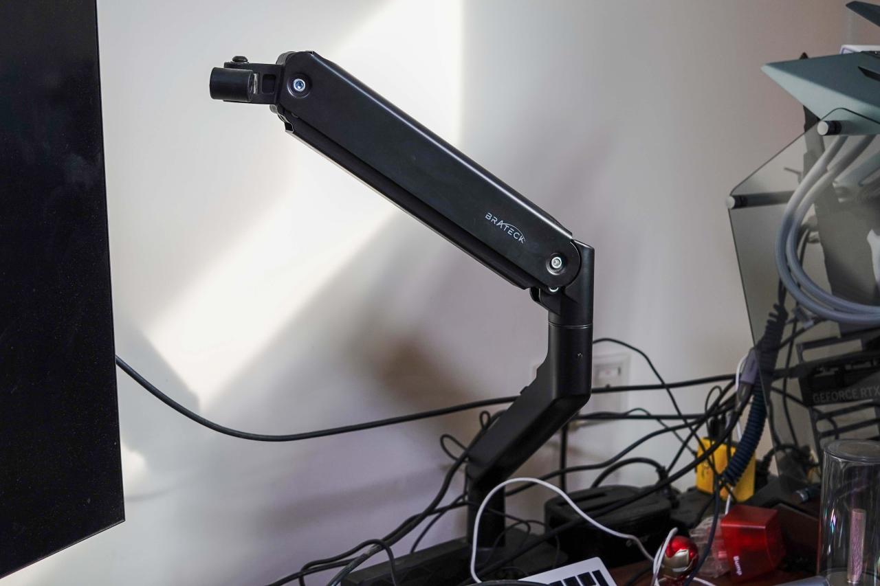 雷鸟U8显示器的原装支臂支持左右、上下、斜角以及高度共计八向调整,基本可以满足常规桌面的所有调整需求。