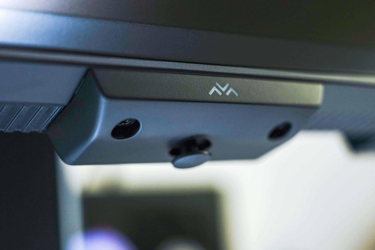 电源开关和OSD控制被集成成一个按键,设计在屏幕正下方,需要切换显示设备或者调试功能的时候会非常方便,扬声器则在底部两侧。