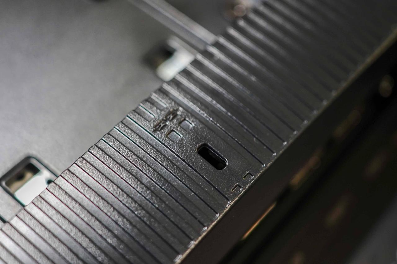 接口区被设计在OSD操作按键后方,不同接口中间留空比较大,即是是很粗的线材也不会存在互相遮挡的问题,多主机用户可以放心接线。