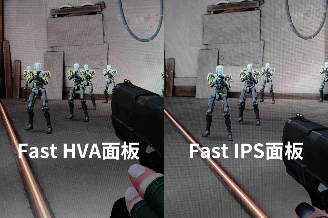 ● 在观感方面,HVA主要优势在于峰值亮度,对应更高的对比度,说简单点就是可以让暗处更暗,明处在视觉上更突出,对竞技类游戏而言帮助很大。