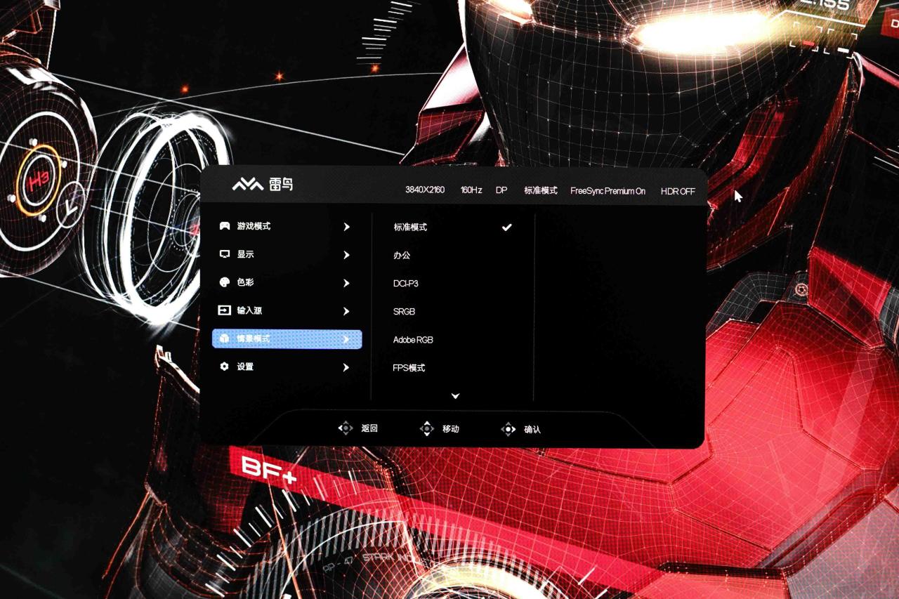 比较奇怪的是雷鸟把色域切换做到了情景模式里面,简单给新手朋友说一下对应的场景: