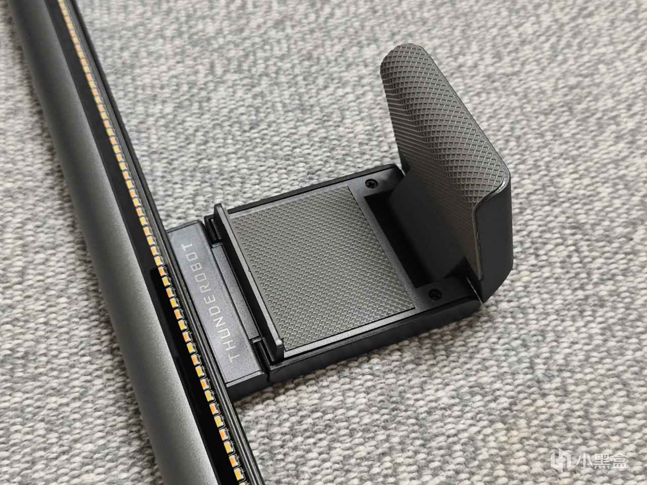 L1 Pro的夹具非常方便,是卡在显示器上面的,夹具可以任意弯曲,能适配市面上绝大多数的屏幕。而且夹具上面有大面积的硅胶防滑垫,可以有效防滑不掉落。