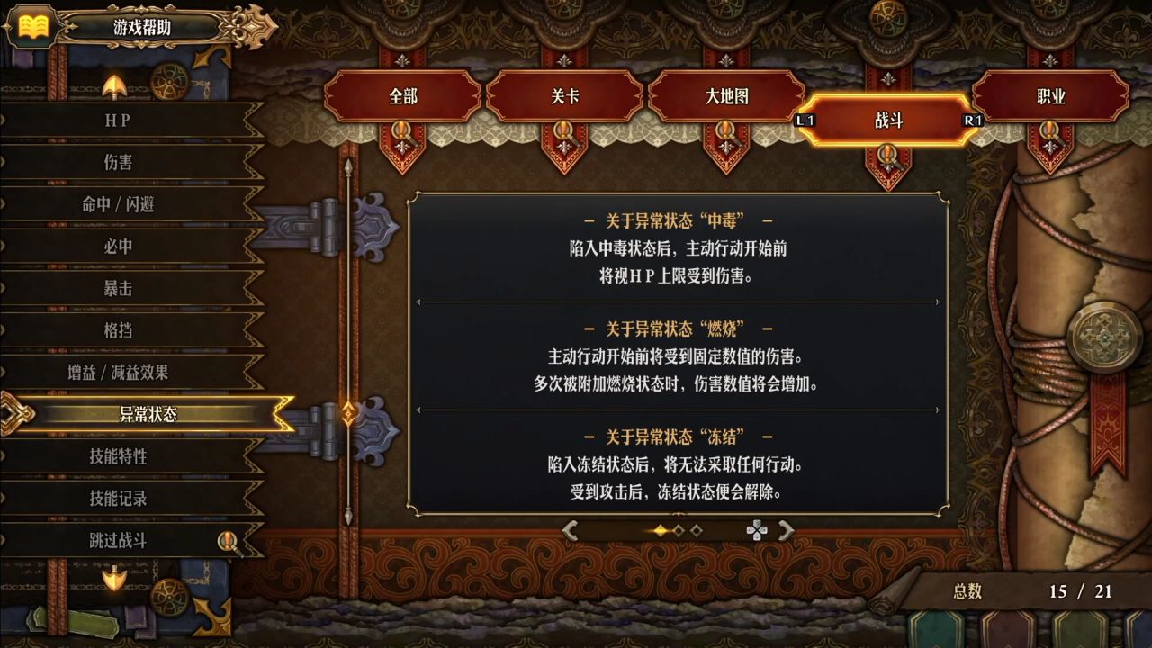 雖然“九十年代的S·RPG”會給人一種硬核的感覺,但《聖獸之王》並沒有在這一點也故意還原“這樣你才知道我們在致敬九十年代”的設計,而是對各方面進行了大幅度優化與改良,帶來了極其舒適的上手體驗。遊戲內置一份事無鉅細的說明書,收錄從地圖探索到關卡戰鬥的絕大部分知識,甚至包括傷害等數值的計算公式。對於系統的大部分疑問,都可以在這裏得到解答。