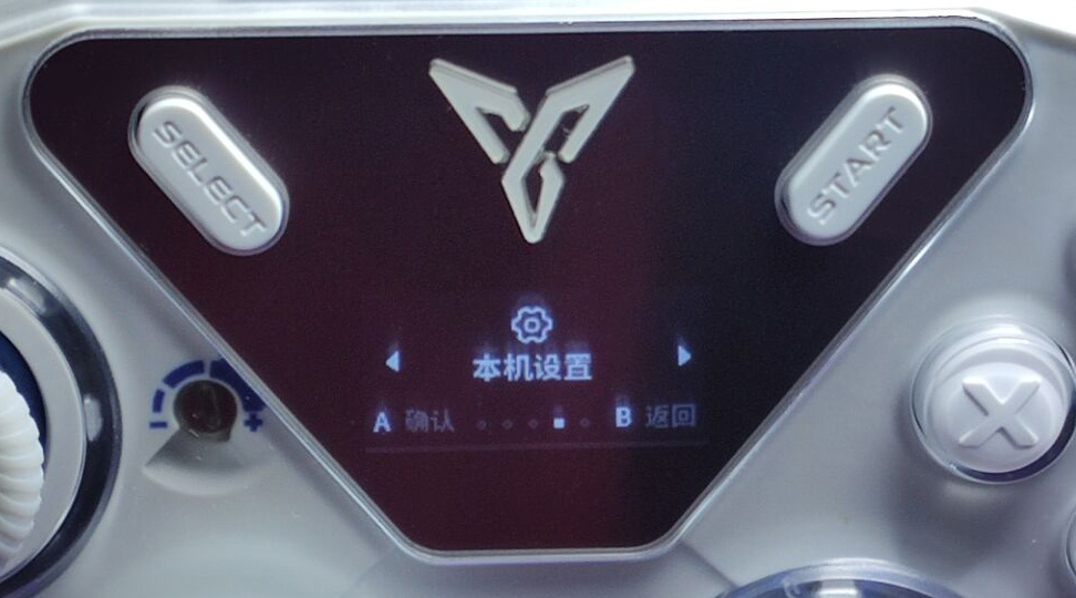 開機狀態下顏值直接拉滿,炫酷的RGB呼吸燈讓本就科技感十足的飛智八爪魚4更是達到巔峯,並且手柄中間位置自帶一個小屏幕,能夠直接在上面可視化的進行一些參數更改,更符合其科技感的外觀,最厲害的是小屏幕上的圖案是可以去他們官網下載“飛智空間站”進行自定義!(雖然八3就可以自定義了)