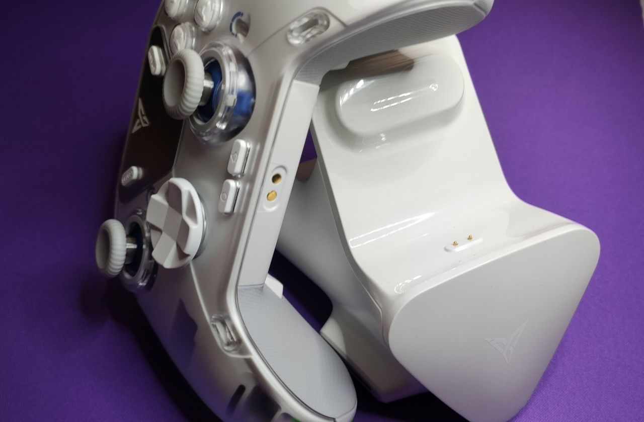 飛智八爪魚4還有一個配套的磁吸充電底座,不過底座需要另外購買,多加一張的價格,除非你像我一樣有強迫症希望買的東西是完整的(就像買遊戲一定要買豪華版一樣),或者是一位收集黨的大佬,我個人是不太推薦購買這個磁吸充電底座的,因爲多少有點多此一舉的感覺,不如直接插上充電,不然更多時候就是當個手柄的支架~