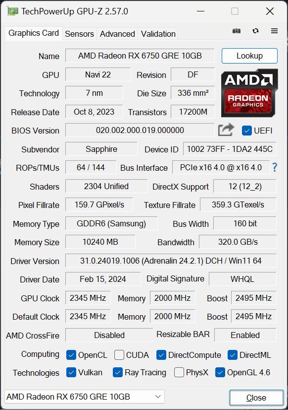 最近AMD Radeon RX 6750 GRE 10GB價格下調(官方價格調整至2049元),這無疑又增加了其購買價值。我們本次測評的是藍寶石RX 6750 GRE 10G D6白金版,擁有出色的用料和做工,還有FSR 3和AFMF幀生成“黑科技”加持,下面一起來看看它的表現吧。