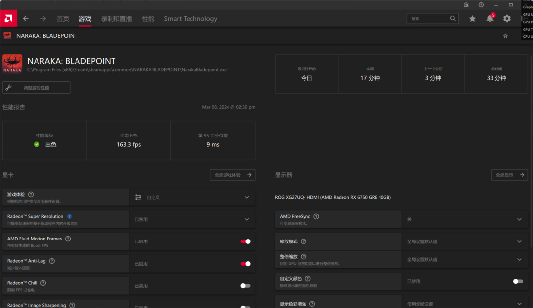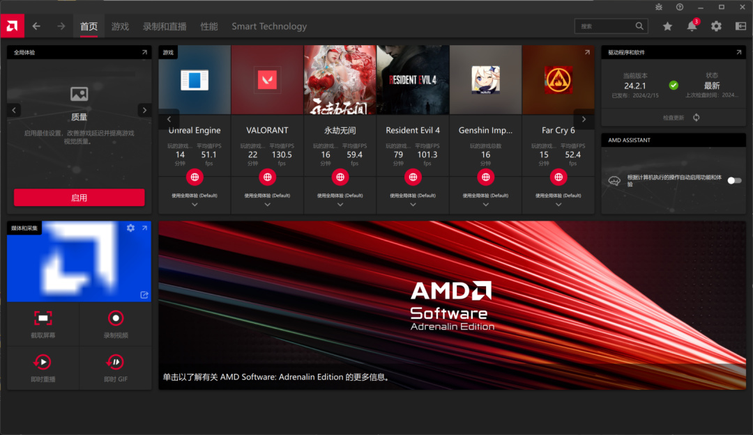 值得一提的是,在我們對AFMF功能的測試過程中,發現新版的AMD Software Adrenalin驅動在使用和操作體驗也有着突出的優勢。較NVIDIA軟件驅動系統,AMD Software Adrenalin有着更爲簡易的操作功能,比如HYPR-RX(一鍵配置文件)功能,可自動開啓AMD AFMF技術,使得遊戲性能大幅提高。還有豐富的性能監控功能,配合Radeon顯卡和Ryzen處理器,進一步釋放平臺的性能潛力。
