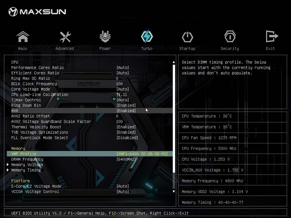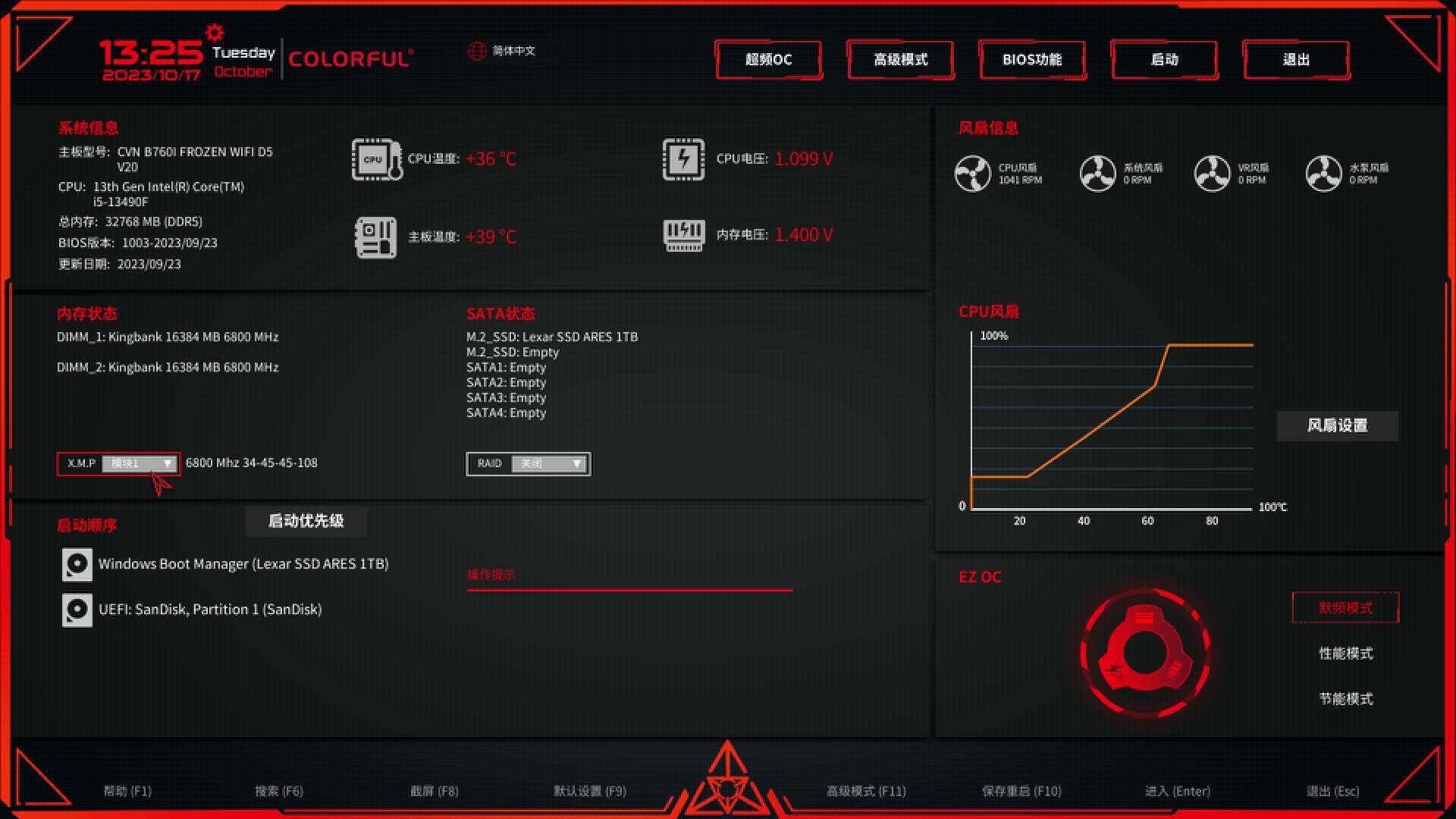 2、目前主流板厂的BIOS基本都是图形化设置,在主页上就可以选择开启XMP,一般是下拉选项,选项即内存预设的多组XMP频率。
