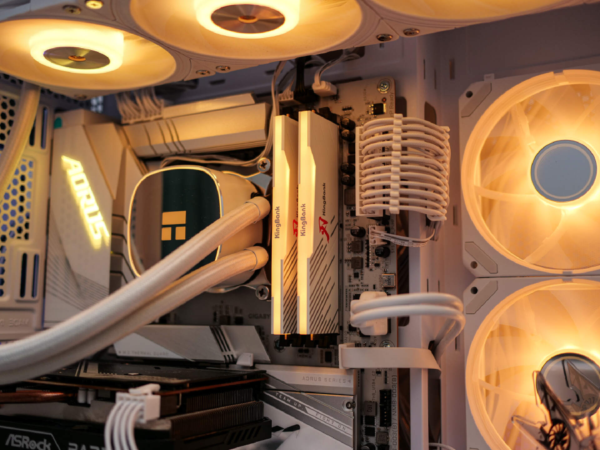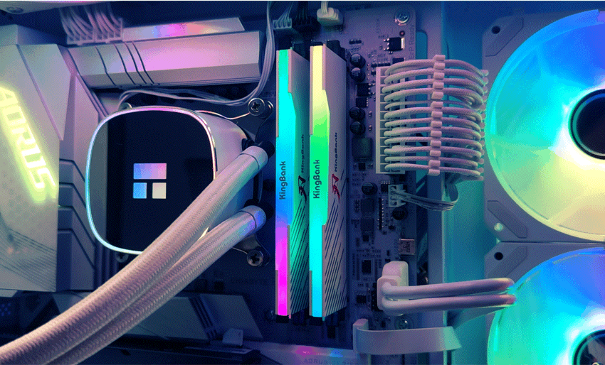 内存电路也是现在高端内存普遍采用的10层强化版PCB电路板,可以确保电气性能,提升内存的耐压性,同时减少电气信号之间的干扰,对内存的稳定运行很有帮助。颗粒方面,金百达白刃RGB 48GB套条采用SK海力士原厂原印M-die颗粒,并且是特挑颗粒,这样配置下的超频潜力必定杠杠的。