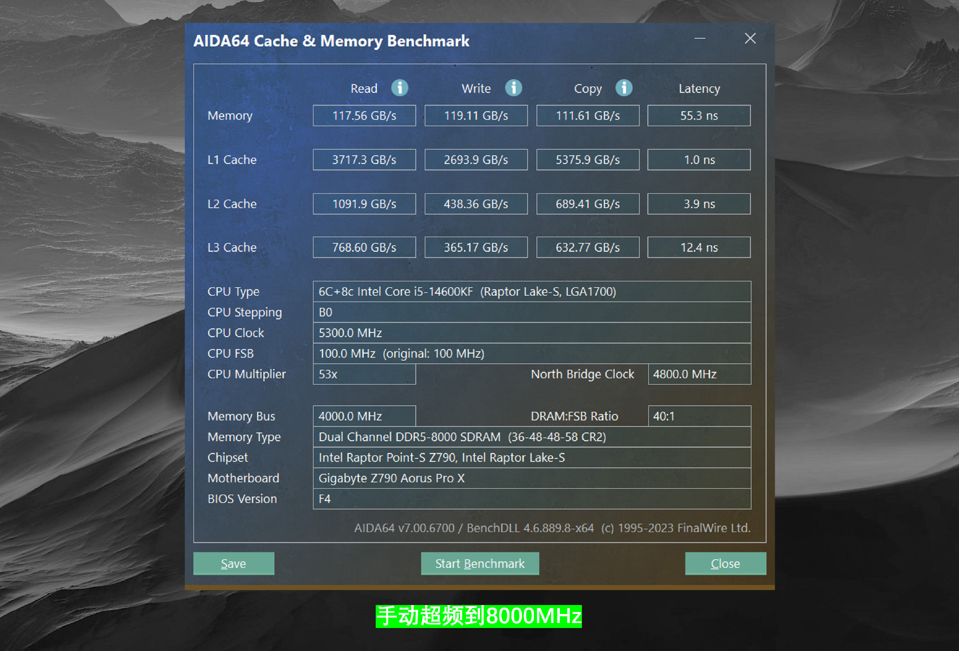 再来看看8000MHz下AIDA64内存读写测试表现: