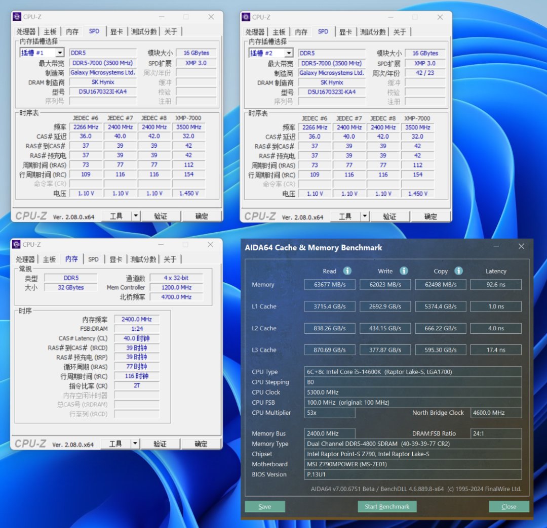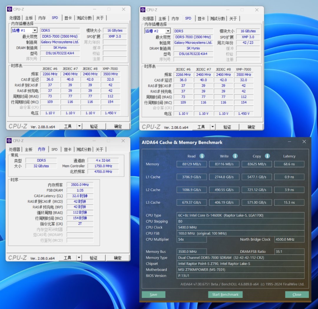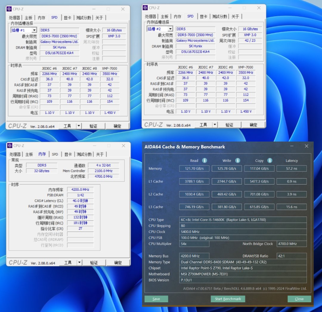 想要上高频,好体质的内存当然也不能少。今儿搭配测试使用的内存是来自影驰的HOF Pro D5-7000MHz 16G*2内存,海力士-DIE颗粒搭配高颜值散热马甲,可以满足绝大部分玩家对超频的需求。