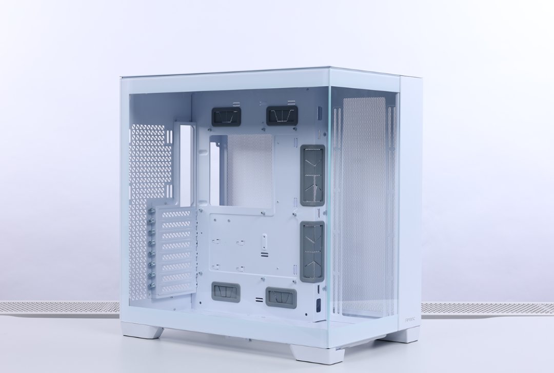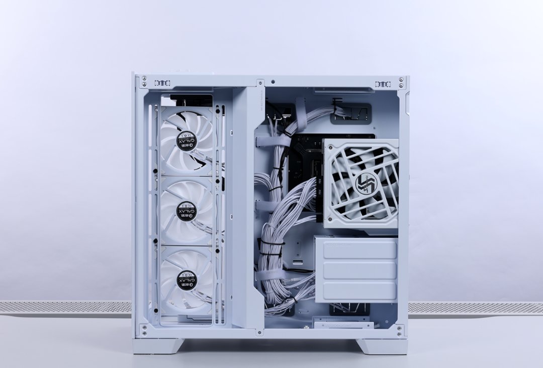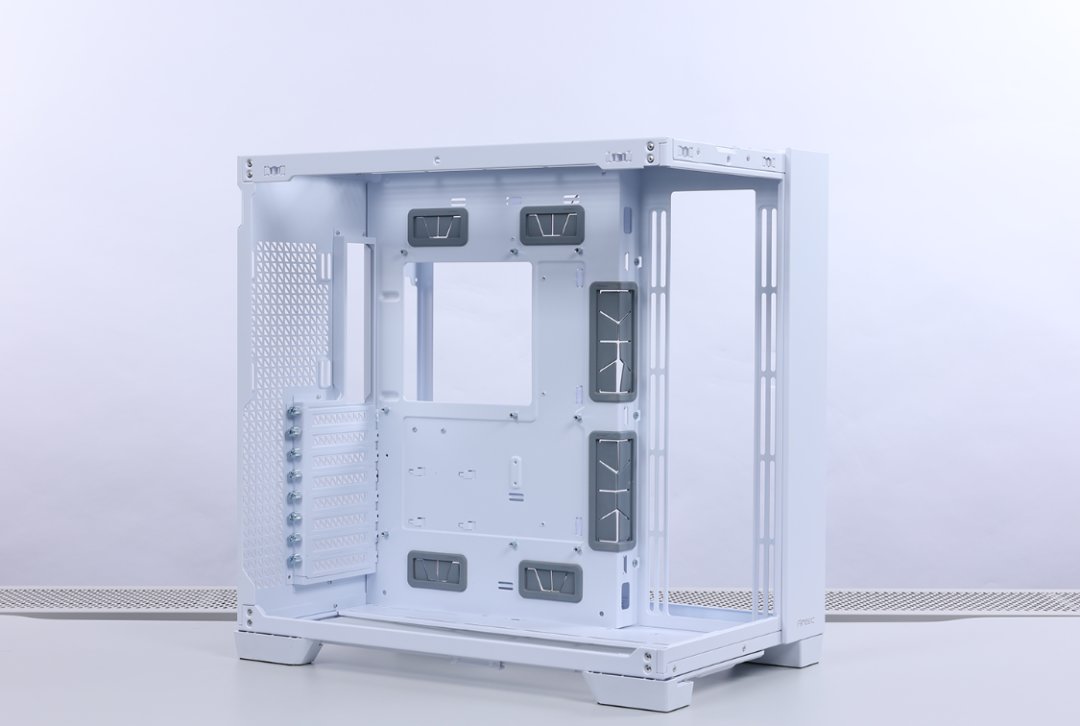 机箱两面钢化玻璃、顶盖、侧板均支持免工具拆装,同时侧板下方还有防跌落的结构设计。兼容性方面,最大支持安装E-ATX规格的主板,显卡限长440mm,至多可安装10把120mm风扇(或者9把140mm风扇),机箱尾部也可以支持140mm风扇,支持安装高度不超过175mm的风冷,顶侧底三面最大均可支持360冷排。