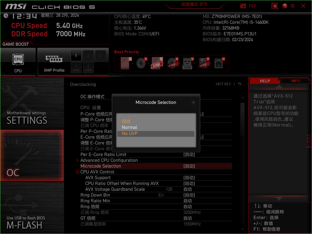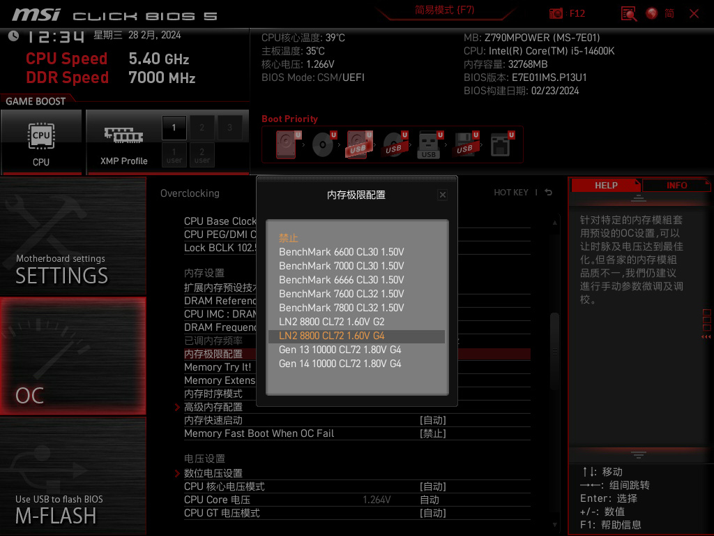 在CPU设置列表中还可以看到,Z790 MPOWER主板也已经支持了降压超频。同时,也针对部分特殊的内存做了更详细的超频优化预设,让玩家可以获得内存的极限性能;
