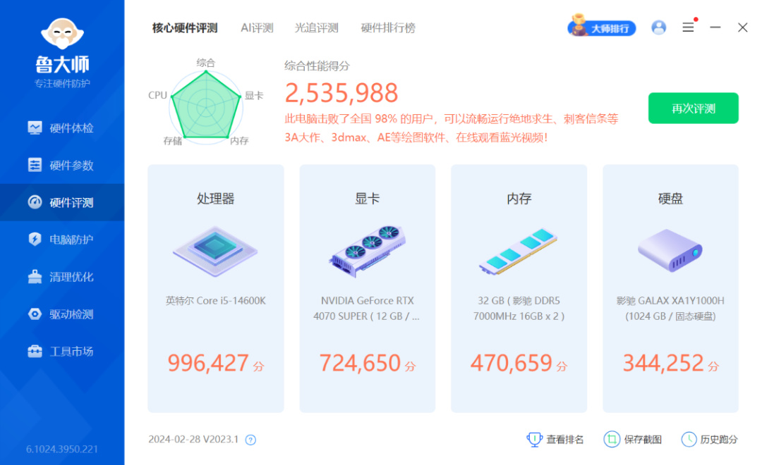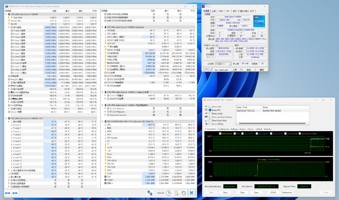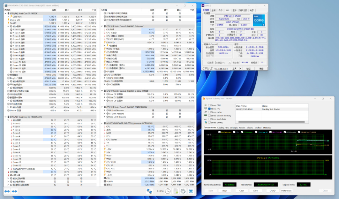 开完箱,当然还得上机实测。处理器使用的是14带酷睿i5-14600K,14核20线程设计,最大睿频可达5.3GHz,基础功耗为125W,最大睿频功耗为181W。