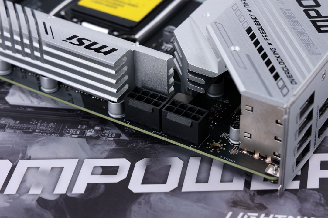 微星主板每个系列都有自己的特色,辨识度也高。全新的MPOWER将主板实物渲染图直接搬到了外包装正面,类似液氮的设计语言则似乎在向玩家诠释这款主板拥有超强的超频性能。