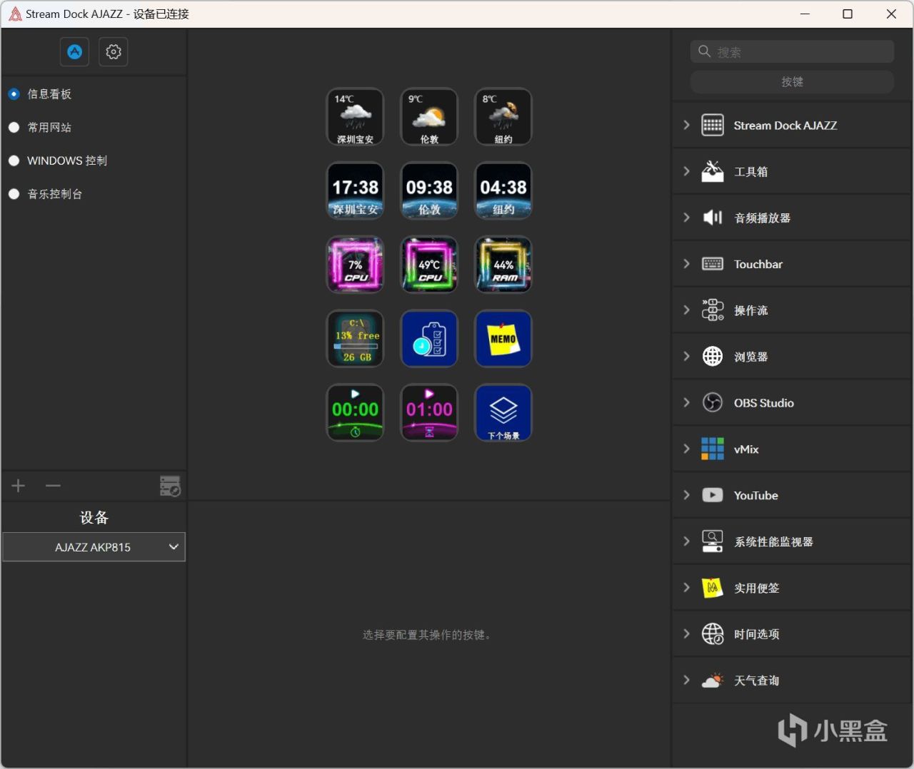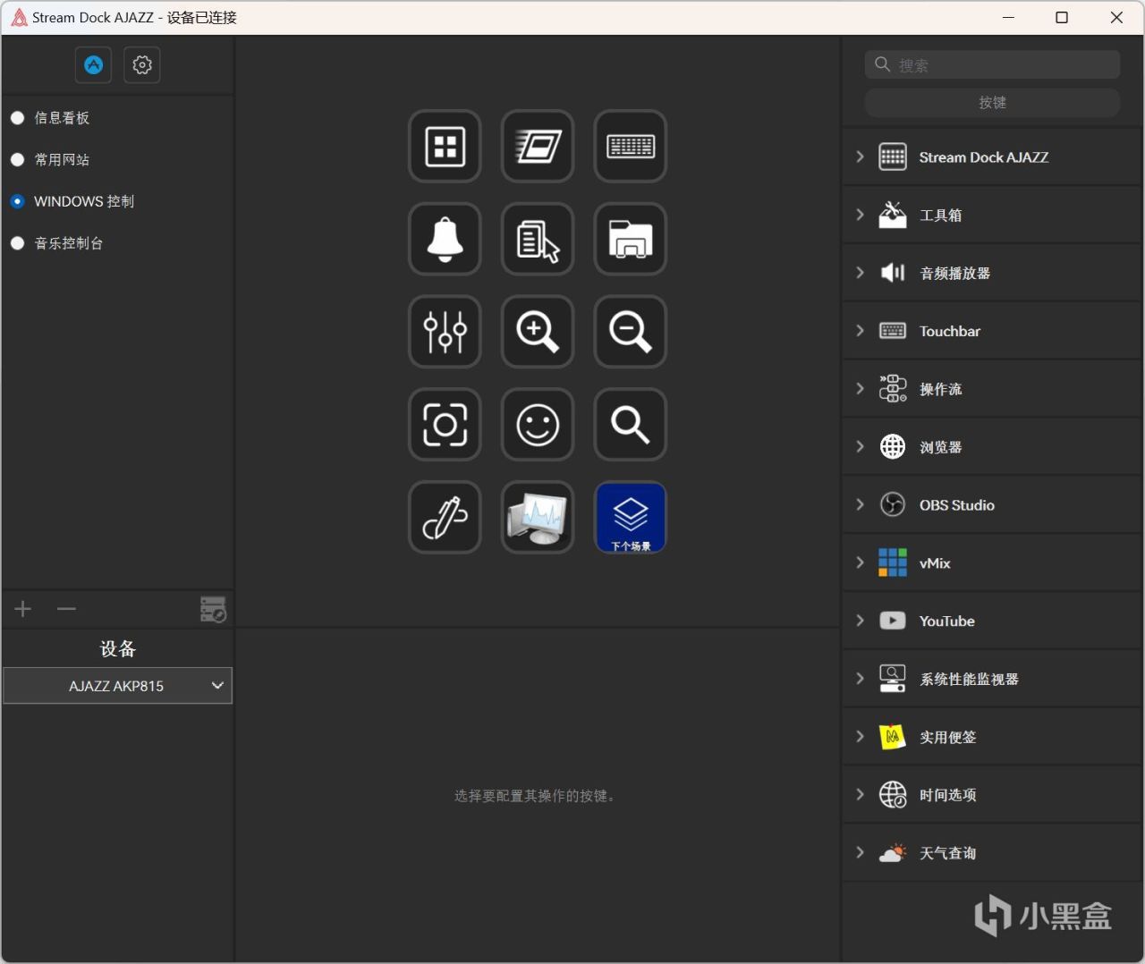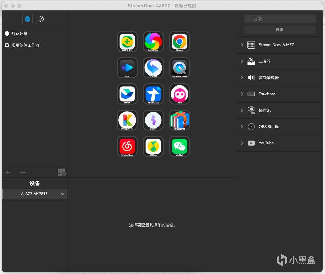 相信熟悉用过Stream Deck的朋友们应该对这个界面很熟悉,基本上跟Elgato配套的软件是大同小异的操作习惯。