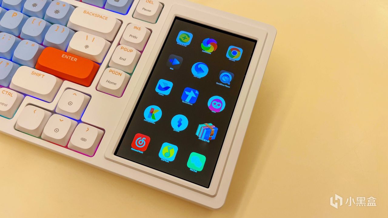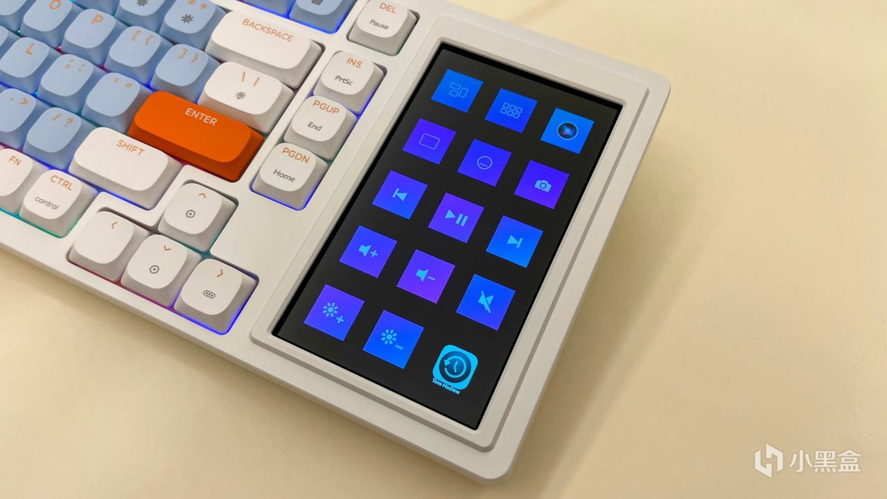 四海哥我也是头一次看到机械键盘带有这么大的屏幕,而且还是触控屏。这个怎么说呢?可以简单理解为在Windows系统上感受macOS那个TouchBar的使用体验。